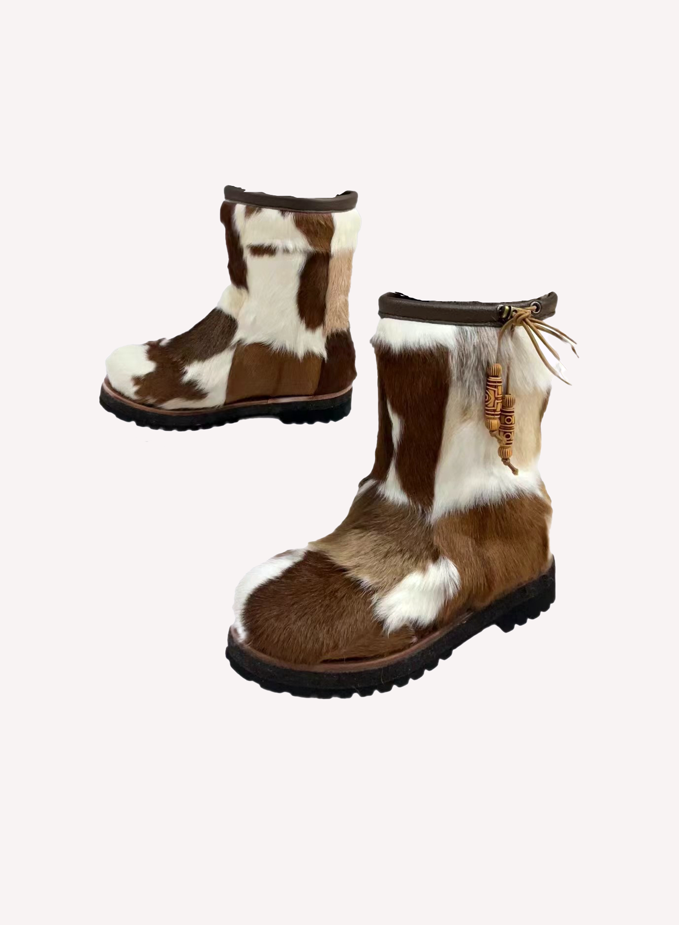 Inspired by the freezing winters of Inner Mongolia and a frustrating search for the perfect snow boots during my university days, I combined the unparalleled craftsmanship of Hailar artisans with modern design to create MOGSki. Each pair is made from sustainable hair-on-hide, blending timeless warmth, waterproofing, and slip resistance with elegance and individuality. MOGSki boots are not just footwear—they're a celebration of heritage, resilience, and style, made to empower you through every winter adventure.