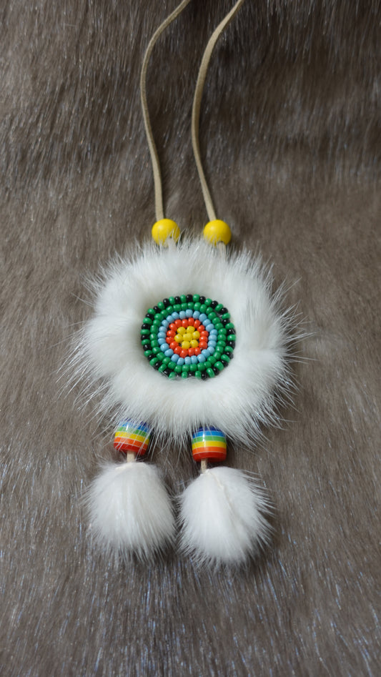 Twoside Ewenki Sunflower Necklace – Handcrafted Mink Fur Pendant